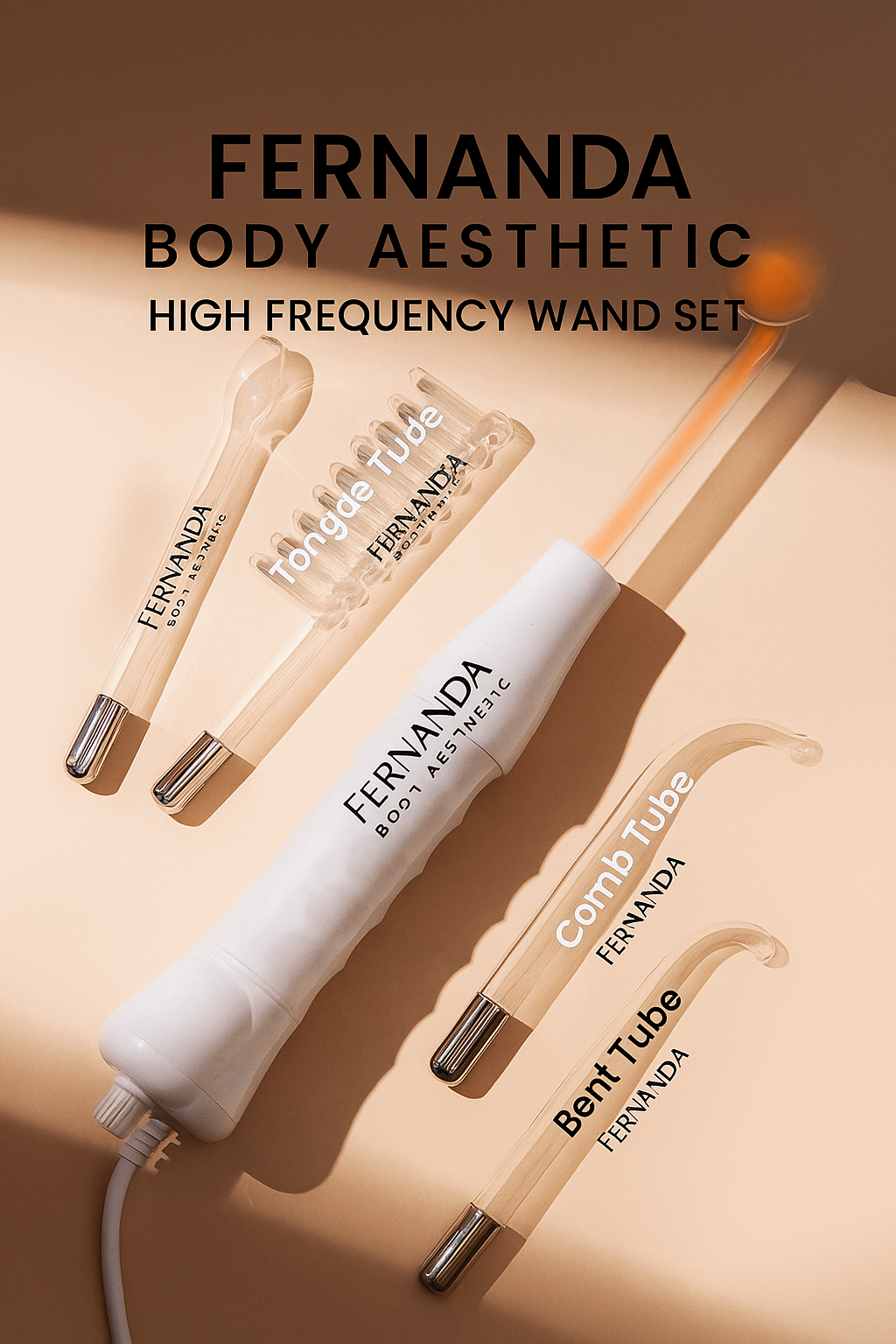 Here’s the thing. The Fernanda Body Aesthetic High-Freq Wand Set brings a spa-style treatment into your home routine. The device uses safe high-frequency energy to deliver gentle pulses through glass electrodes. You can focus treatments on the face, acne-prone areas, scalp, and small spots of concern. The set includes four electrodes for targeted use: a tongue tube for spot treatment, a comb tube for the scalp, a bent tube for precise areas, and a mushroom tube for broader coverage. Each electrode fits securely into the wand handle and changes easily between treatments.