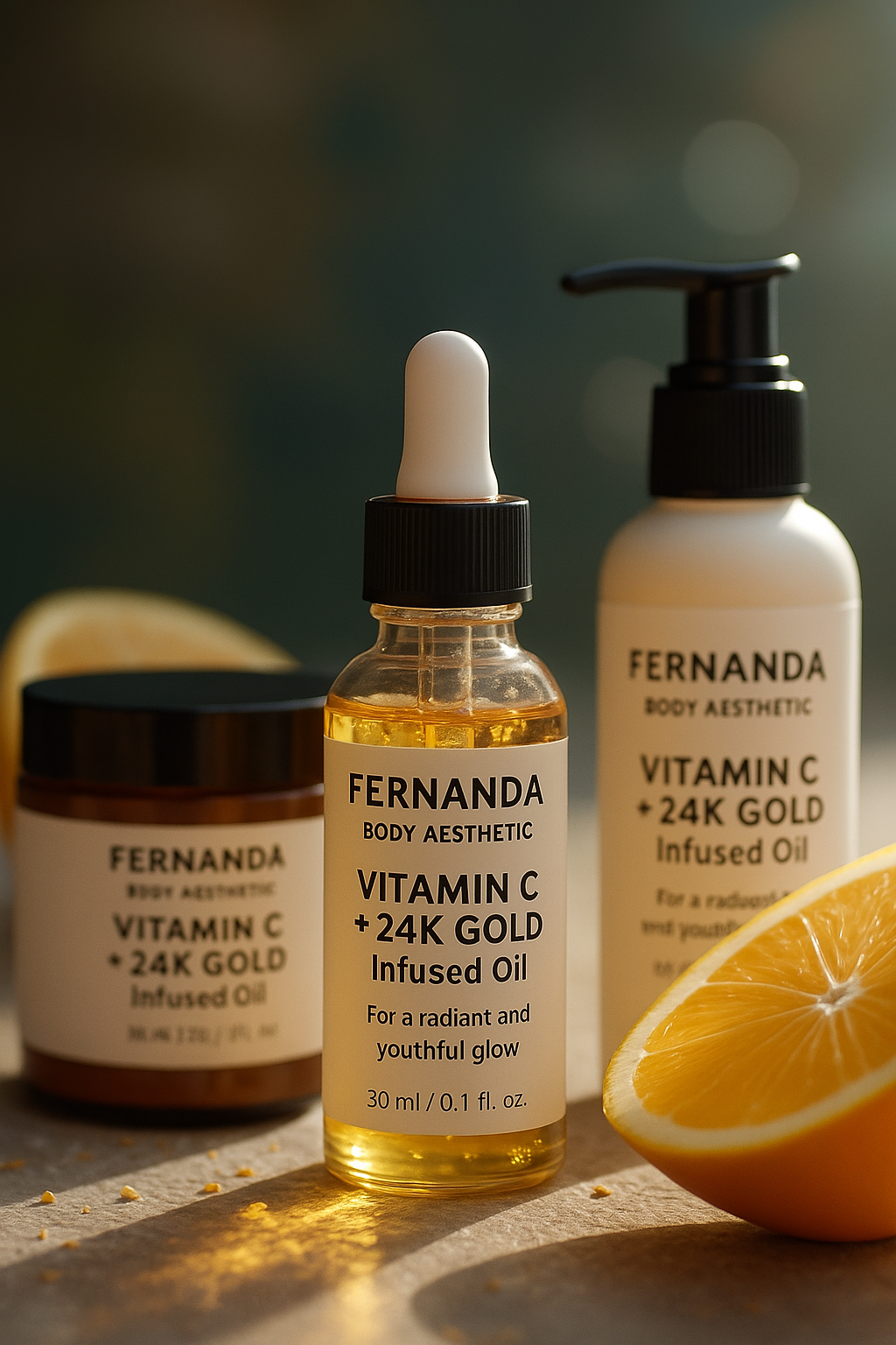 Here’s the thing. Fernanda Body Aesthetic created a luxury facial oil that blends stable Vitamin C with micronized 24K gold flakes. The formula absorbs quickly and leaves skin luminous without a greasy finish. Lightweight emollients deliver hydration while brightening actives help even skin tone. Gold flakes add a soft, reflective glow and give the serum a premium feel. Use two to three drops after cleansing and before your moisturizer to help skin look more radiant. The texture layers cleanly under makeup and nighttime treatments. Ingredients are listed on the bottle and on the product page to keep shopping clear and simple. What this really means is a single-step luxury serum you can add to daily routines. It targets dullness and the look of uneven tone while offering a pleasant sensory experience.